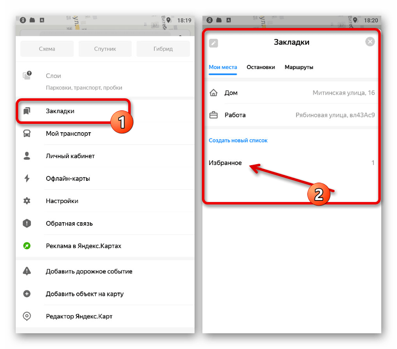 Выделенные объекты на карте можно не только отправлять, но и добавлять в закладки аккаунта, чтобы использовать в будущем. Такой подход напрямую связан с предыдущим решением из-за очень похожих действий.