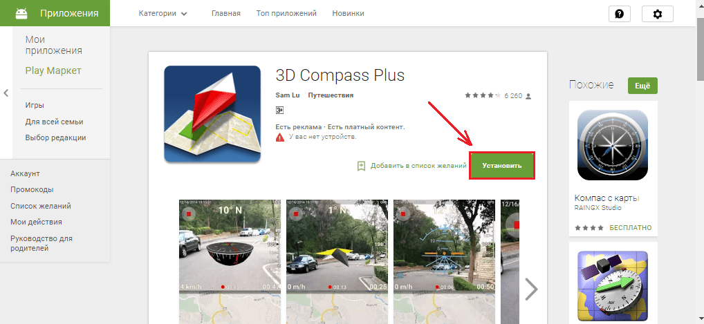 Первым делом Вам необходимо скачать и установить компас на своё устройство. Сделать это можно как через приложение Play Market на смартфоне, так и через компьютер наофициальном сайте Google Play .