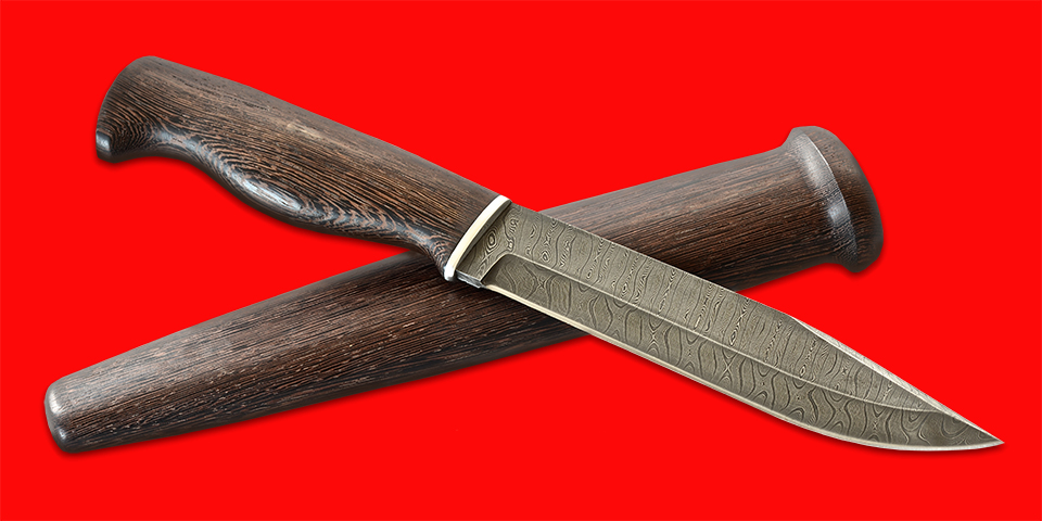 Нож из дамасской стали.  Произведённые из него ножи смотрятся исключительно роскошно благодаря необычным орнаментам, возникающим в силу неоднородной текстуры этой стали.