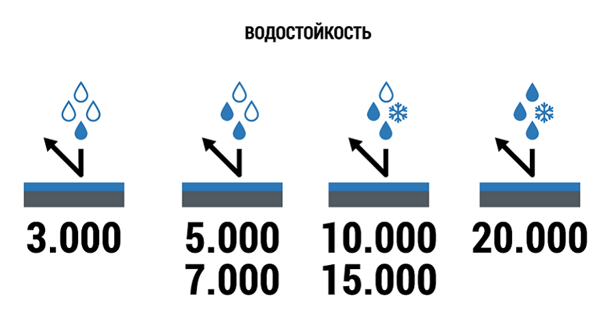 - 20000 – шторм. Мембраны с таким показателем водостойкости используются для экстремальных походов и яхтенной одежды.