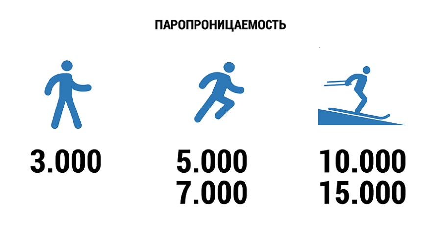 Это соотношение обозначается цифрами наподобие 5000/10000, где первое – водостойкость, второе – паропроницаемость. От первого показателя зависит, насколько сильные и продолжительные осадки выдержит одежда, от второго – степень физической активности, при которой мембрана будет справляться с отведением влаги от тела, – ведь чем активнее вы двигаетесь, тем сильнее потеете.