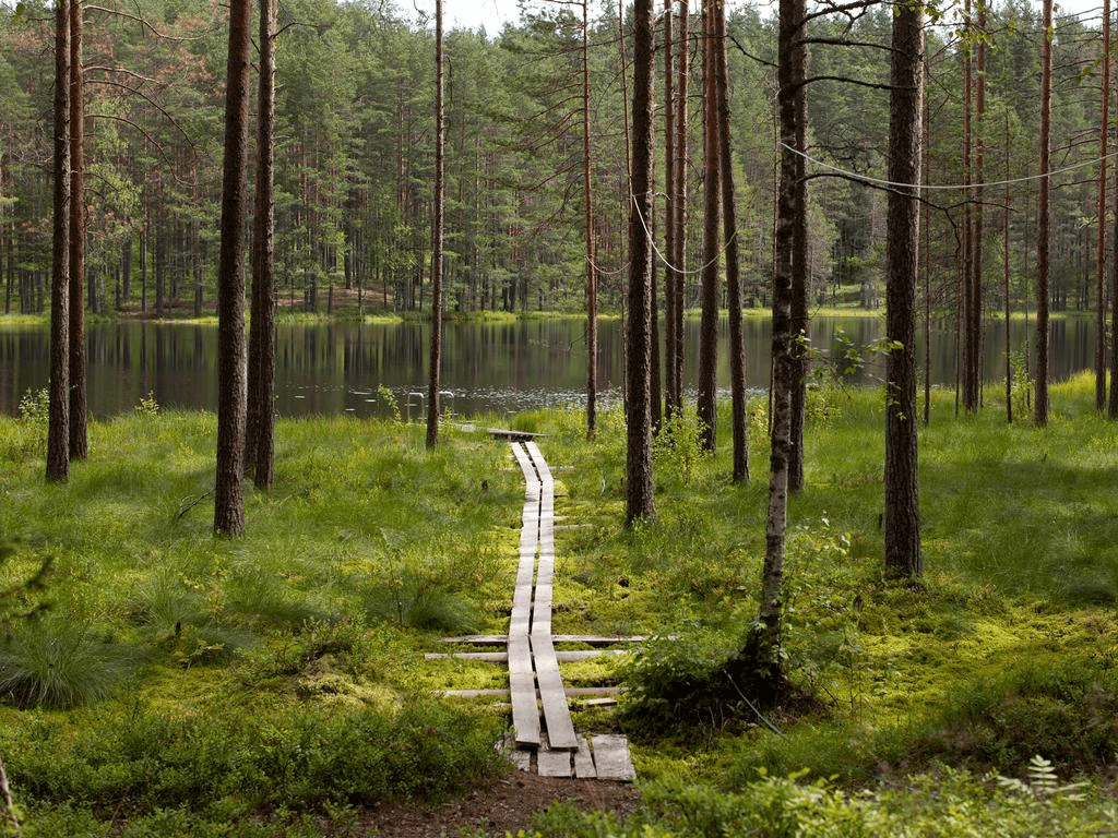 Первая точка маршрута – гора Сампо с отвесными скалами и высокими соснами. Покорив вершину, можно насладиться завораживающим видом на окрестности.