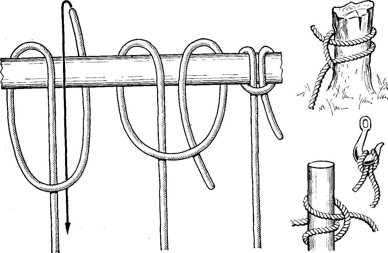 Когда-же опора не имеет свободного конца стремя нужно завязывать вторым способом — одним концом.