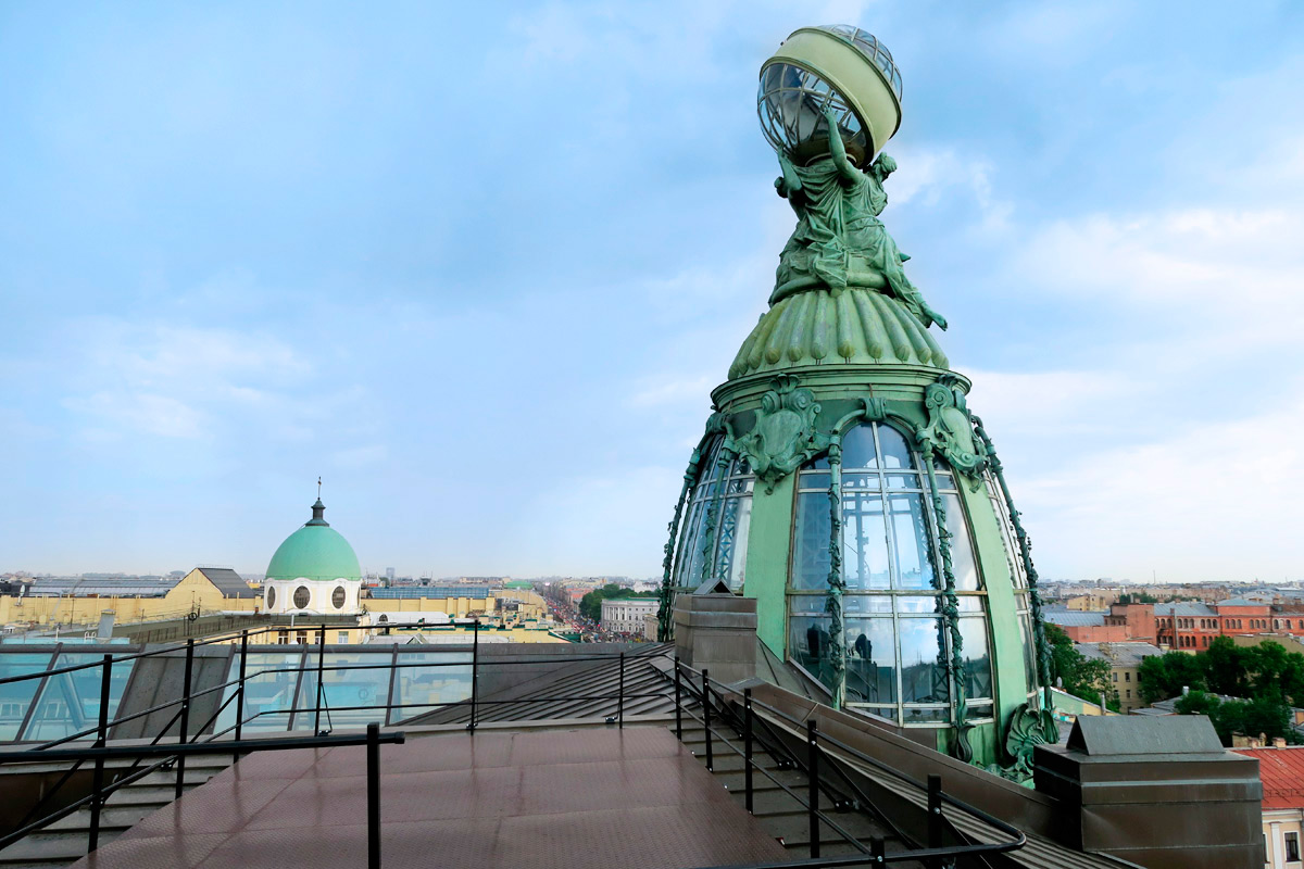 На последнем этаже расположена площадка, откуда открывается поистине завораживающий вид на Невский проспект. Сегодня здесь расположен офис сотрудников социальной сети ВКонтакте, поэтому доступ для всех желающих на смотровую площадку закрыт. Кстати, в Доме книги можно купить самые лучшие в СПБ открытки по низким ценам и сразу же их отправить – почтовое отделение находится через дорогу, рядом с еще одним собором.