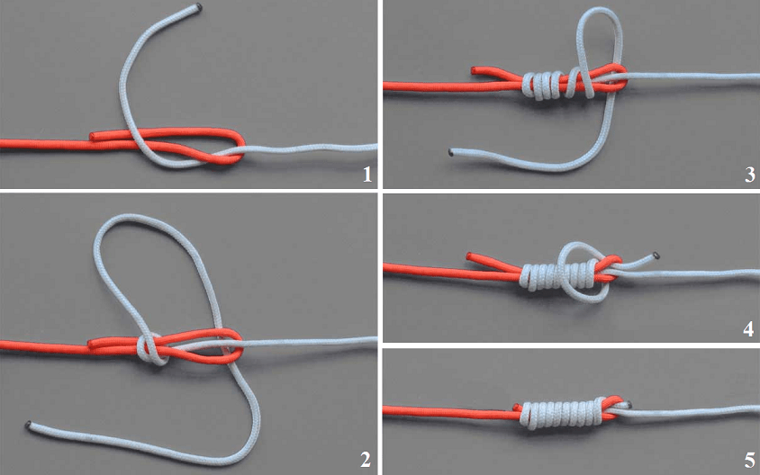- Одной лесой обмотать другую, сформировав петлю.