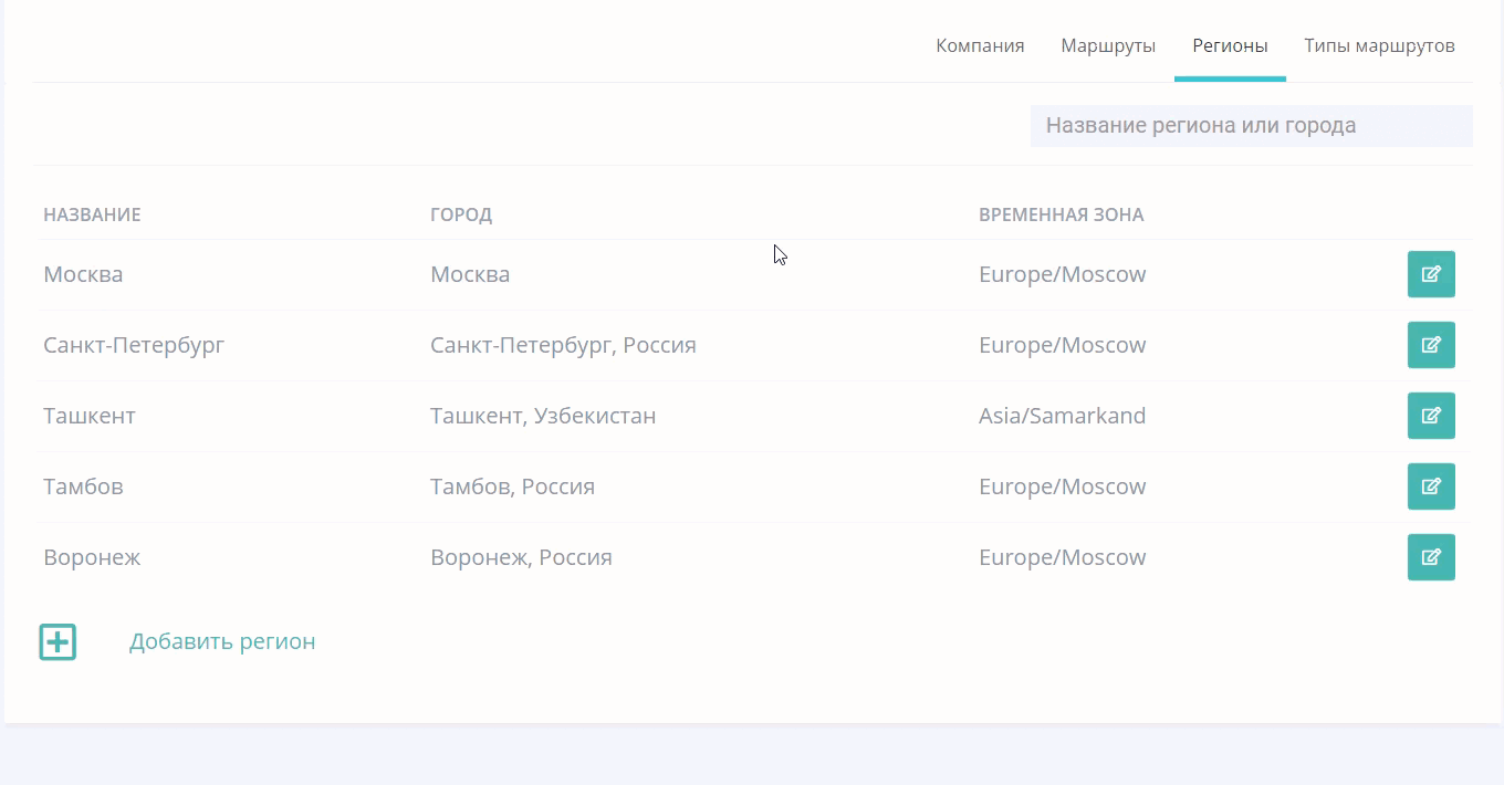 Важно! Вы можете создавать маршруты только из тех регионов, которые были добавлены в систему